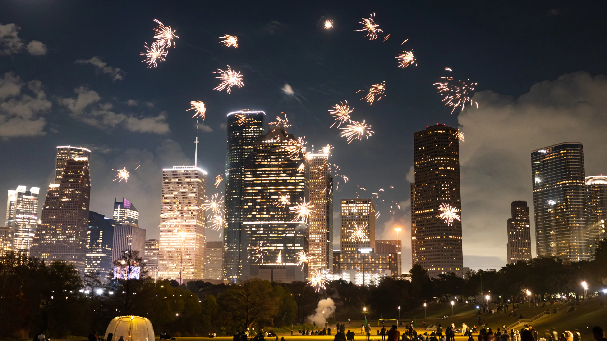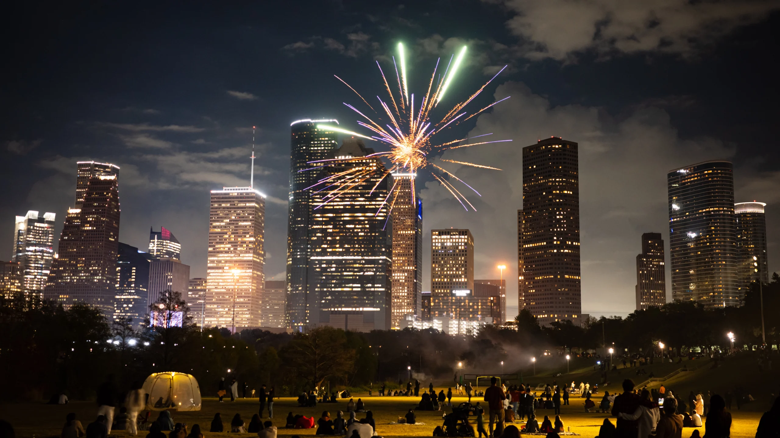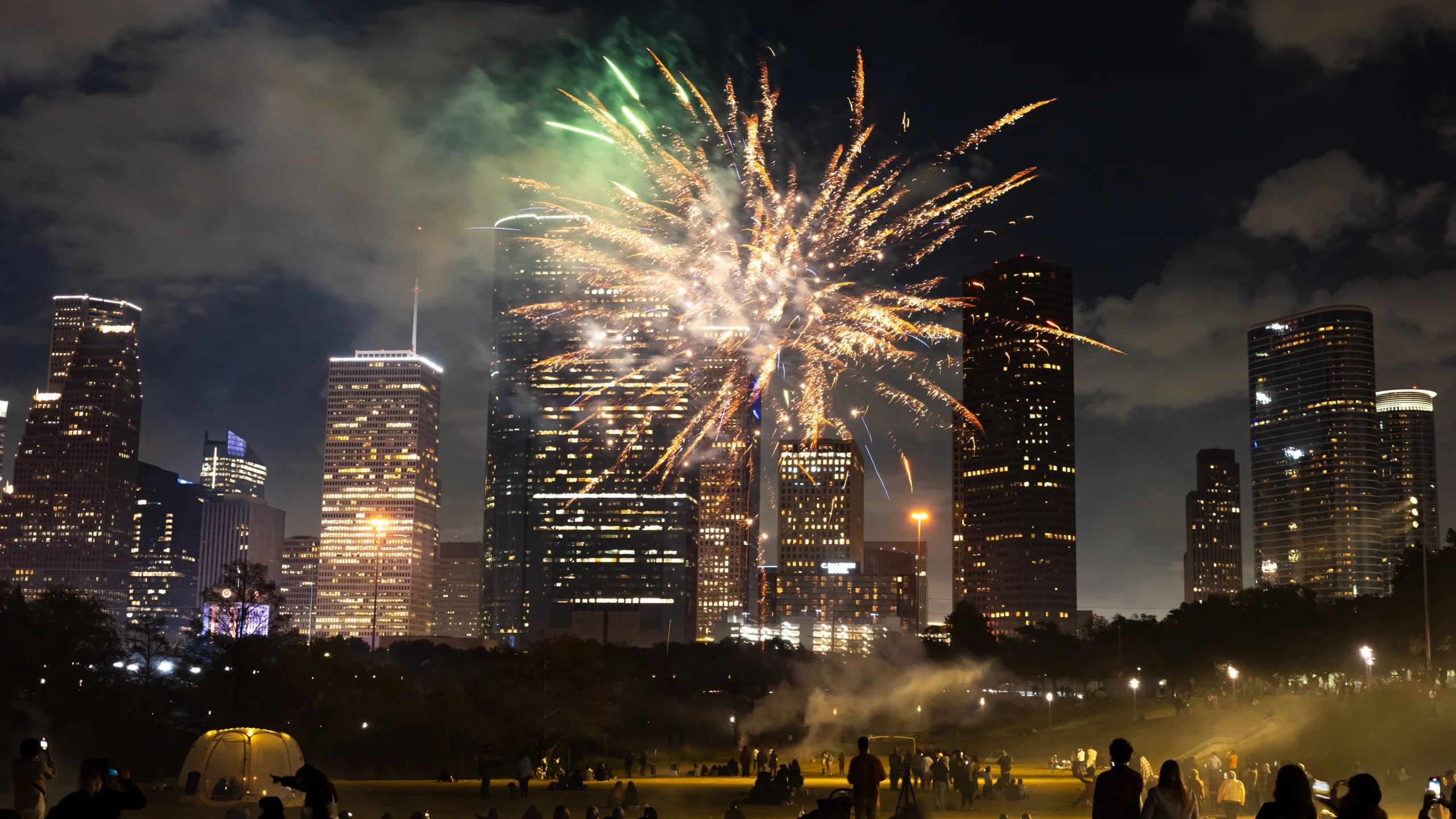 My planning for photographing the New Year’s Eve fireworks in Houston revealed both discerning and gullible sides to my location scouting. Misfortune has it that a hurried google image search lead me to think that fireworks shot from all the rooftops in downtown as if each building were a vase of radiant fan palms. Based on that misconception, I selected the Nau Family Pavilion in Eleanor Tinsley Park as a vantage point with an unobstructed view of downtown Houston thanks to the eastward course of Buffalo Bayou. When the clock struck midnight, the ensuing show did not resemble my imagination – the Houston skyline did not turn into a bundle of sparklers.